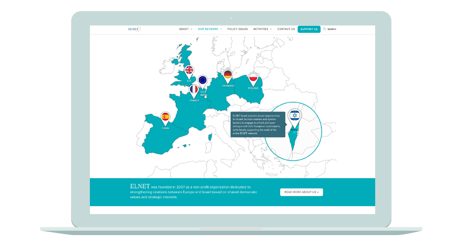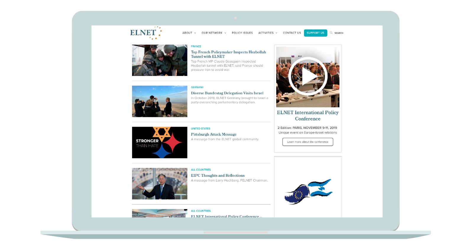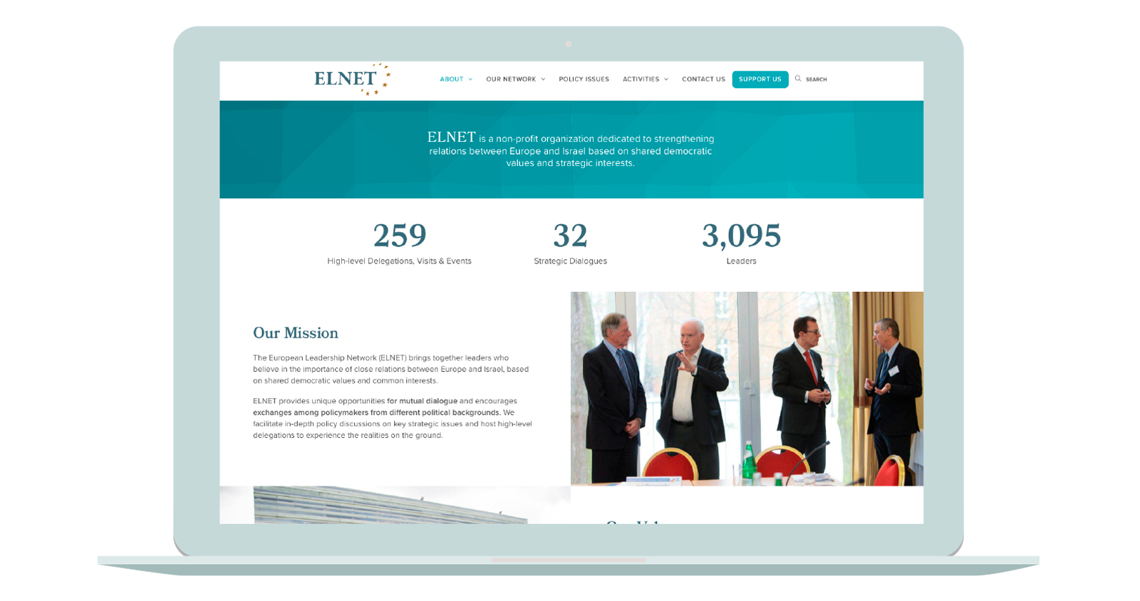 אלנט הוא ארגון ללא מטרות רווח הפועל לטובת הידוק היחסים בין אירופה לישראל, הארגון פנה אלינו במטרה לבנות אתר חדש. מהר מאוד התבררה המשימה כגדולה ורחבת היקף. כמות האינפורמציה רבה, סניפים בכל רחבי אירופה ופעילות ענפה – מהם יצאנו לתהליך אפיון שכלל מחקר מעמיק וחידוד ה״חשוב״ וה״פחות חשוב״ וחלוקה הירארכית של הנתונים. התהליך הוליד אתר מבוסס תוכן, מסודר ונקי כך שיהיה קל לקריאה ועיון.